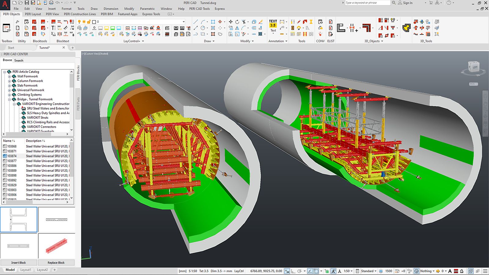 PERI CAD 25 es un potente plugin BricsCAD para usuarios experimentados de CAD para la creación profesional de planos de encofrados y andamios.Permite un modelado 3D preciso y eficiente, la creación de planos de construcción comprensibles y listas exactas de materiales para optimizar la logística en obras.
